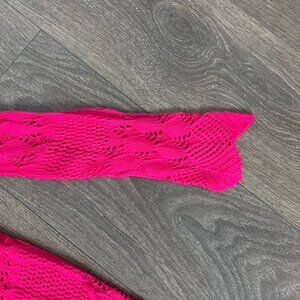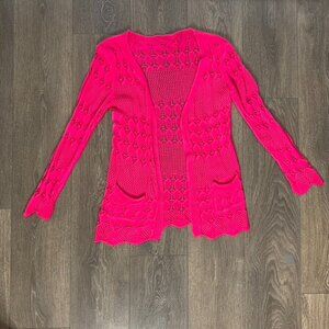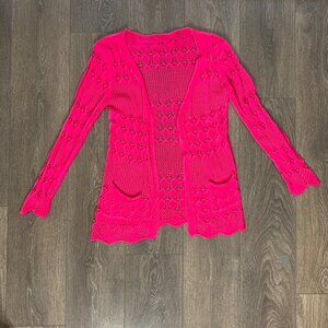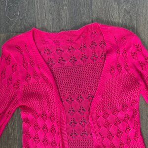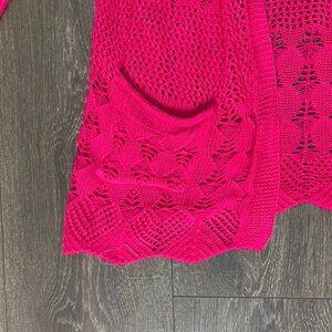 Women's Pink Crochet Knit Cardigan Sweater Pink Open front Boho Chic