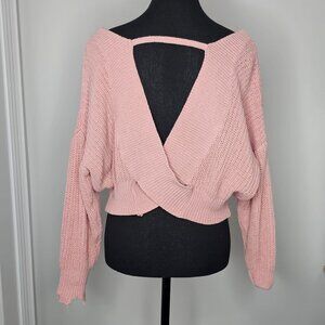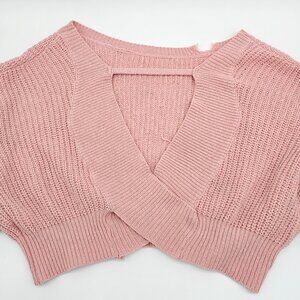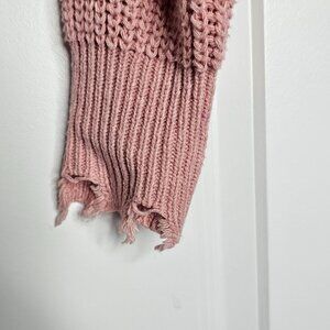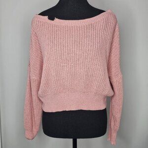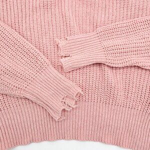 Women's Pink Cropped Distressed Knit Sweater, Size S