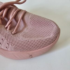 Step out in style with these chic pink knit sneakers. Perfect for casual outings, these shoes offer comfort and a trendy look. Elevate your wardrobe with this versatile pair.