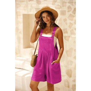 Womens Pink Rompers Summer Wide Leg Short Overalls Adjustable Strap Bib Jumpsuit