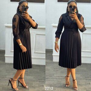 Women's Pleated Midi Dress with Floral Detail & Belt – Size S, M, L, XL