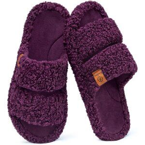 Women's Plum-Violet Fuzzy Open-toe Slippers Soft Comfy Foam Indoor House Shoes