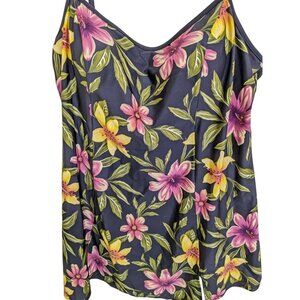 Womens Plus Size 26W One Piece Swimdress Swimsuit Colorful Tropical Floral Black