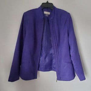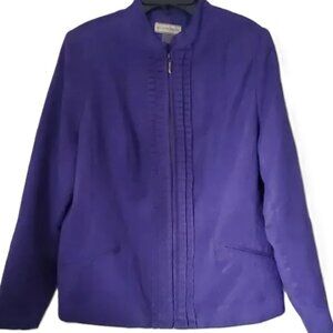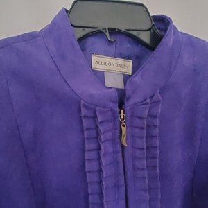 Vintage quality ALISON DALEY designer jacket | A deep purple colour with a band collar | Vertical pleats flank the zipper | Fully lined