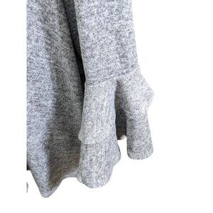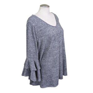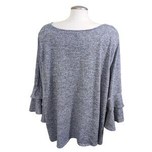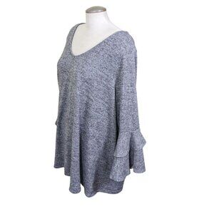 Womens Plus Size Sweater 3X Heathered Gray Double Bell Sleeves V Neck Plush Soft