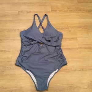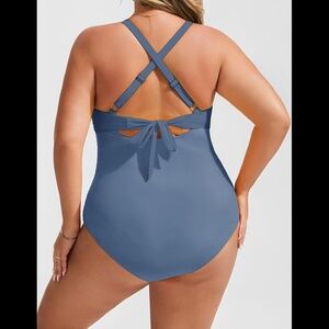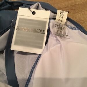 Brand new Hanna Nikole women’s plus size 24W blue one piece bathing suit. Features a slimming mesh and tummy-control ruching that smooths and shapes your silhouette. Removable chest pad, adjustable shoulder straps and back tie offer customized support and comfort. Cut-out and twist front detailing adds a touch of allure without compromising on modesty. Fully lined.