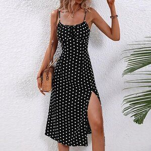 Womens Polka Dot Sundress Spaghetti Strap with Slit