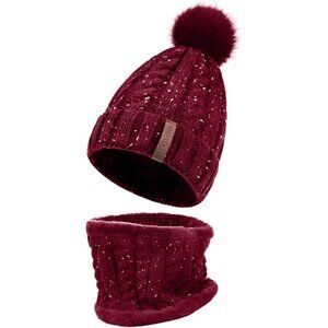 Women's Pom Beanie Hat and Scarf Set Cute Winter Ski Hat with Fleece Lining