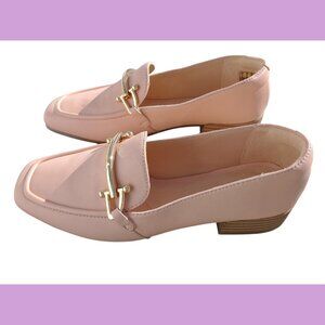 Women's Pure Block-Heel Leather Pink Loafers, size 6