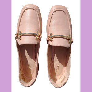 Clarks Pure Block pink genuine leather loafers, size 6M