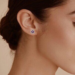 CZ Stud Earrings: Square earrings featured with a large sparkling cubic zirconia in the center and surrounded by some small shining cubic zirconias, meticulously set 20 smaller cubic zirconia stones, that enhances the overall brilliance of the earrings for women