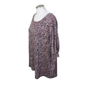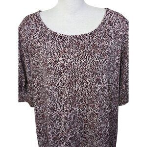 Womens Pus Size 2X Cheetah Brown Leopard Print Top Casual Puff Sleeve Scoop Neck