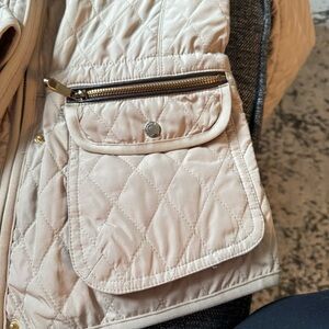 Stay stylish and warm with this elegant cream quilted jacket. Perfect for any occasion, this jacket combines comfort with a chic design.