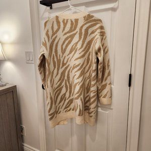 Women's RW&Co. Beige & Cream Zebra Pattern Open Cardigan