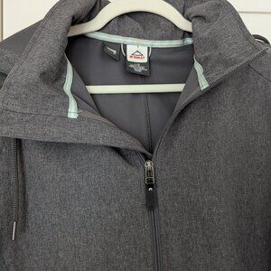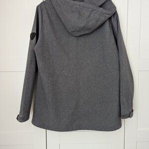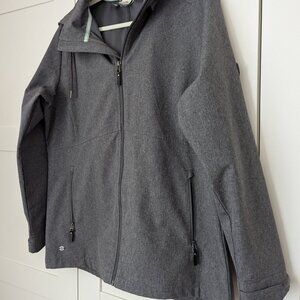 Gently worn womens rain coat in a heathered grey, size L, by McKinley.