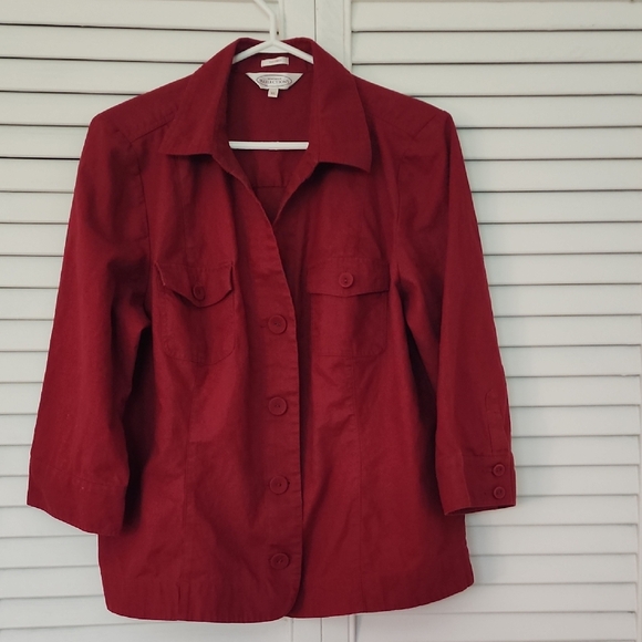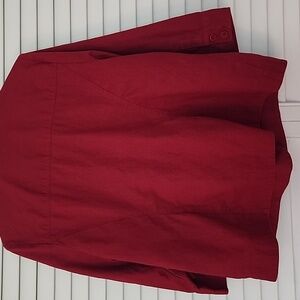 Elevate your style with this chic red button-up jacket. Perfect for any occasion, this jacket offers both comfort and elegance.