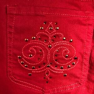 Women’s Red Jeans. Embroidered Back Pockets. Chicos. 38/29. Like New.
