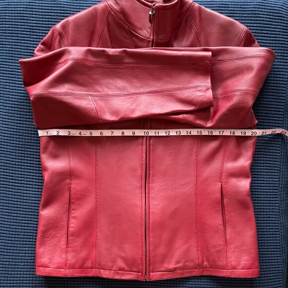 Elevate your style with this stunning red leather jacket. Perfect for any occasion, this jacket offers both comfort and elegance.