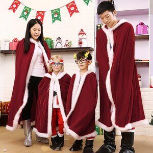 HOTTEST high quality womens girls halloween christmas party costume Mrs Santa Claus cloak hoodie velvet hooded cloak capes role play fancy dress xmas robe outfit cosplay costumes shawl playwear for adults kids.