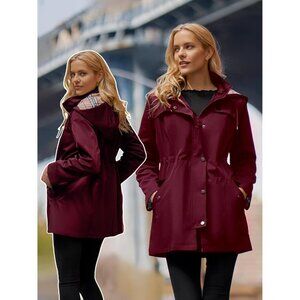 Women's Red Waterproof Long Raincoat Outdoor Windbreaker Jacket with Hood