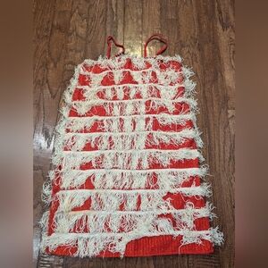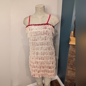Women’s Red sparkle Fringe 1920’s Flapper Great Gatsby Costume Dress Size S. No tags