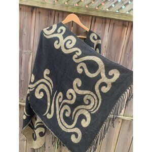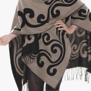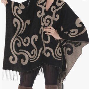 Womens Reversible Swirl Pattern Open Poncho Shawl