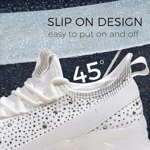 🆕 Women's Rhinestone Mesh Slip Walking Shoes Breathable Glitter Sneaker White