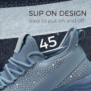 【All-DAY COMFORT】:The Sparkle Walking shoes offer Mesh Knitting Upper helps you keep your feet stretch and breathable.Slip-On with shoelace design,easy to put on and take off. Memory Foam Insole,allows you to walk for a long distance or stand for a long time without feeling sore