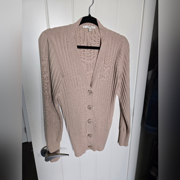 Stay cozy and stylish with this ribbed cardigan sweater. Perfect for layering, this beige sweater adds a touch of elegance to any outfit.
