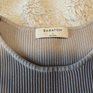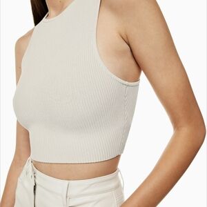 Babaton Sculpt Knit Racer Cropped Tank top, a compressive figure-enhancing garment constructed with close distinct ribs for a structured feel.