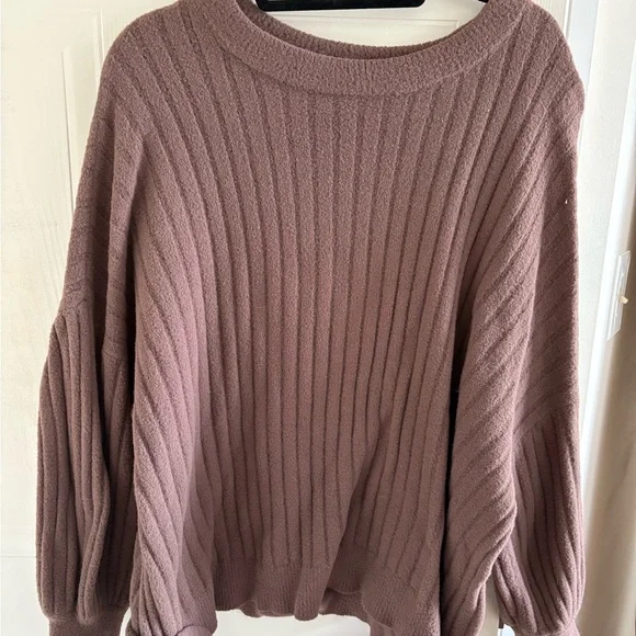 Stay cozy and stylish with this ribbed knit sweater in a beautiful mauve shade. Perfect for any casual outing.