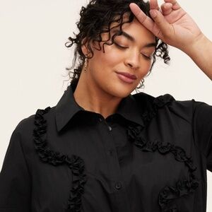 This listing is for the Ribbon Short-Sleeve Midi Shirtdress from kate spade new york for Target. This midi length dress is constructed from cotton-blend fabric with an allover sewn on ribbon pattern in solid black. Its front button-down design, side pockets and collared neckline make this dress easy to dress up or down.