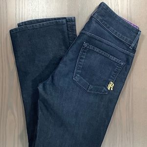 Women’s Rich & Skinny High Rise Straight Jeans in Dark Indigo Hemmed Size 28/27. Double Button.