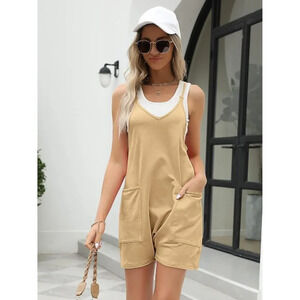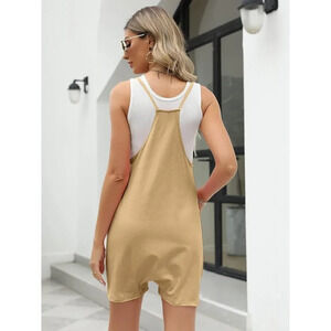 Womens Rompers Apricot Wide Leg Shorts Overalls Adjustable Strap Bib Jumpsuit