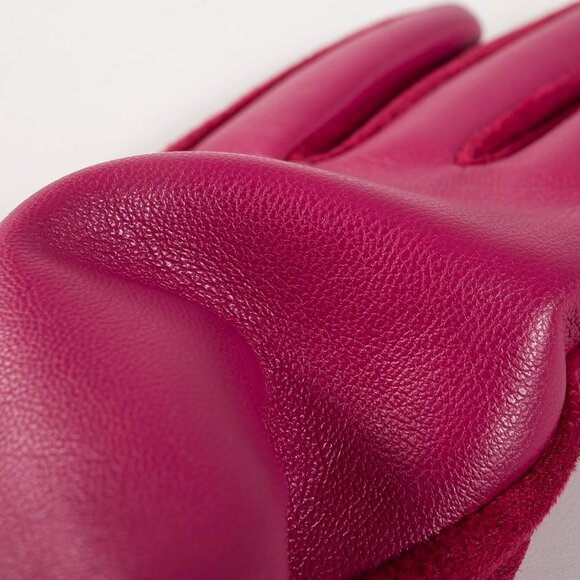 Womens Rose-Red Winter Fashion Leather Windproof Warm Suede Driving Dress Gloves