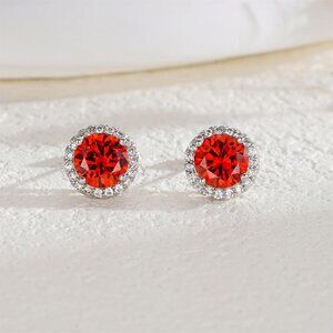 Women's Round Orange Birthstone Elegant Mall Dainty Halo Cubic Zirconia Earring