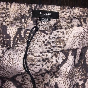 Super light and comfortable, yet stylish joggers. Size XS by Rudsack. 100% polyester. Two front pockets. Back pockets are sewn closed and are strictly to provide shape. Sewn darts above back pockets to add to appearance of a shapely bottom. Back part of joggers have elastic rim. These look great on.