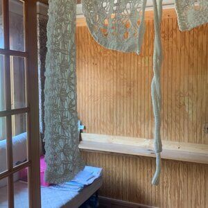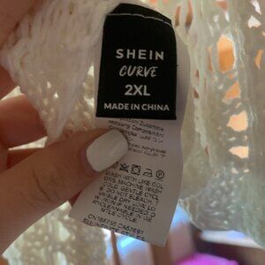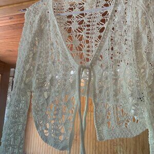 Women's Shein Curve Crochet Knit Crop Cream Color Long Sleeve Tie Front Cardigan Top Beach Swimsuit