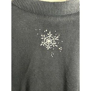 Women's STUDIO JOY Holiday Zip Up Sweater Vest ~ Black White Snowflakes Size XL