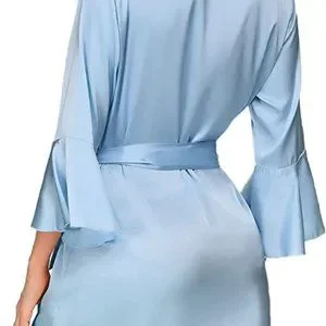 Women's Satin Blue Robe - Ruffle Hem BRAND NEW