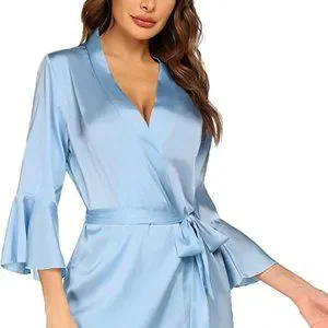 V Neck Bathrobe with Ruffled 3/4 Sleeves