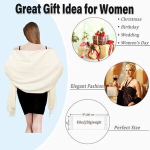 Women's Scarf Pashmina Shawls and Wraps Winter Warm Silky Scarves -Off White