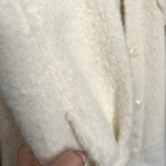 Like new-worn only once. Very soft. Xs but oversized-I am between a small and medium typically. Excellent quality.