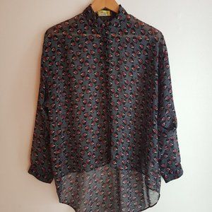 Excellent condition women's sheer button down - loose fitting and longer in the back.
