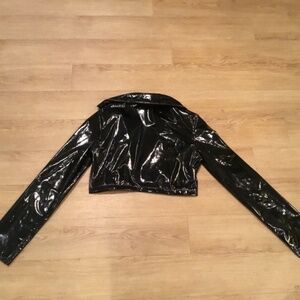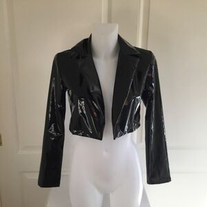 In new condition without tags women’s size M black shiny faux leather long sleeve cropped jacket/bolero.