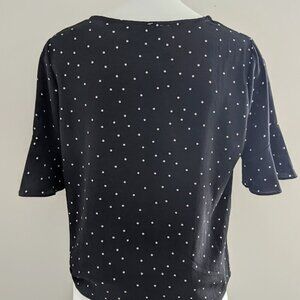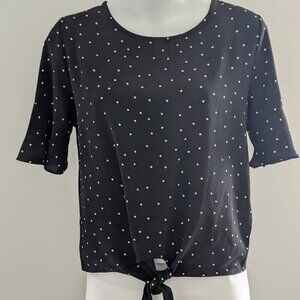 Women's Short Flounce Sleeve Polka Dot Bottom Tie Front Blouse | Size M