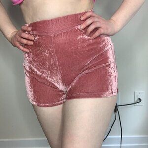 Women's Shorts Crushed Velvet Velour High Rise Waist Elastic waistband Rose Pink
