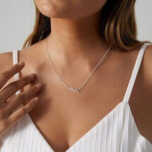 *SIZE* --Silver CZ olive branch leaf pendant necklace:17.3"+1.9" with extension.A olive leaf size 23.2mm.Please check the size detail before purchase.Adjustable tiny star pendant necklaces can help you find a comfortable length