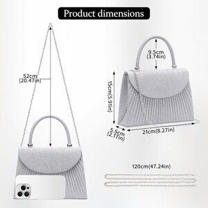 🆕Women’s Silver Glitter Top Handle Evening Handbag w/Chain Crossbody Purse