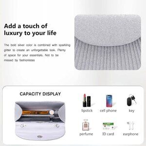 Premium Details: Our womens handbags is crafted from laminated polyester material with a metallic sequins finish, durable metal chain, and silver-tone hardware accents. Premium magnetic snaps ensure secure closure, keeping your belongings safe